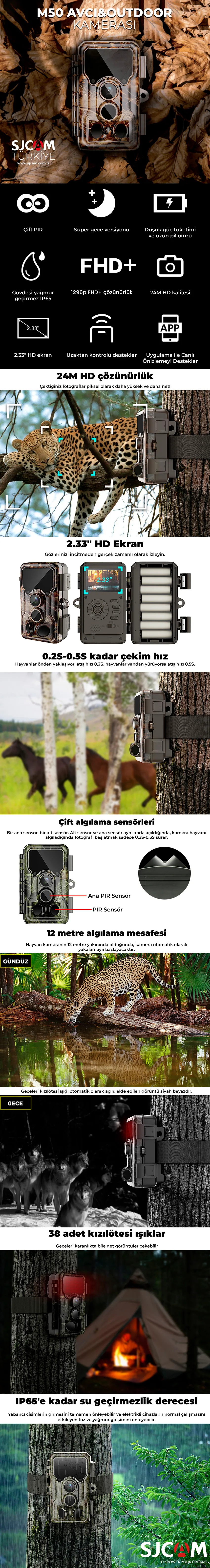 SJCAM M50 Fotokapan Çift PIR Sensör Ultra Gece Görüşü IP65 2.33” Ekran Su Geçirmezlik 1296p 24MP