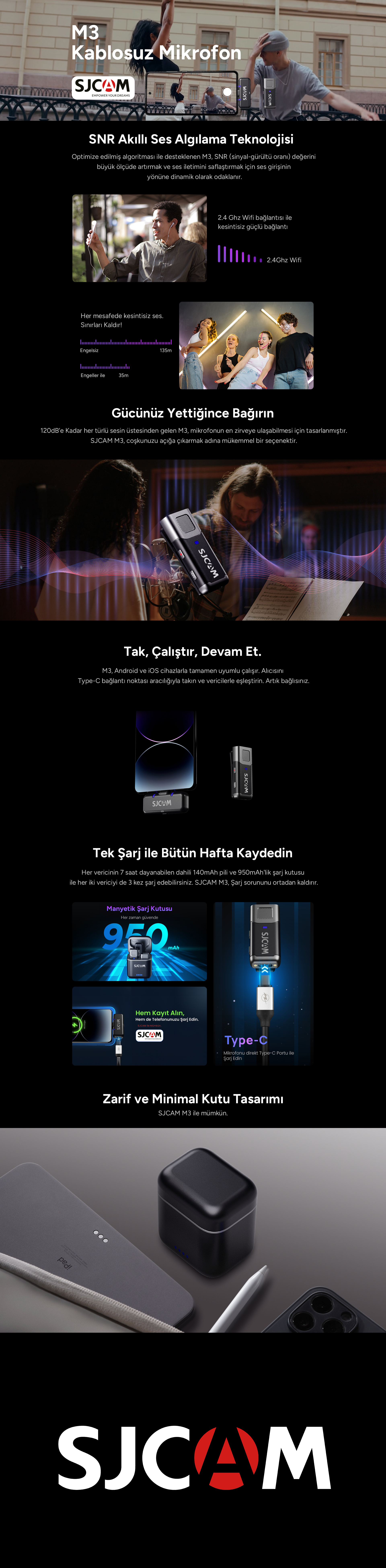 SJCAM M3 Kablosuz Mikrofon, üstün ses kalitesi ve geniş kullanım alanları ile hem profesyonel hem de amatör kullanıcılar için ideal bir çözümdür.
