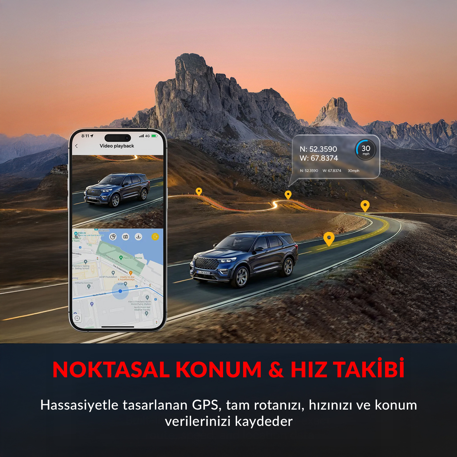 Sürüş rotanızı ve hız bilgilerinizi kaydedin. GPS ve BeiDou desteği sayesinde güvenli sürüş ve izlenebilir veri sağlar.